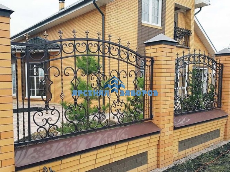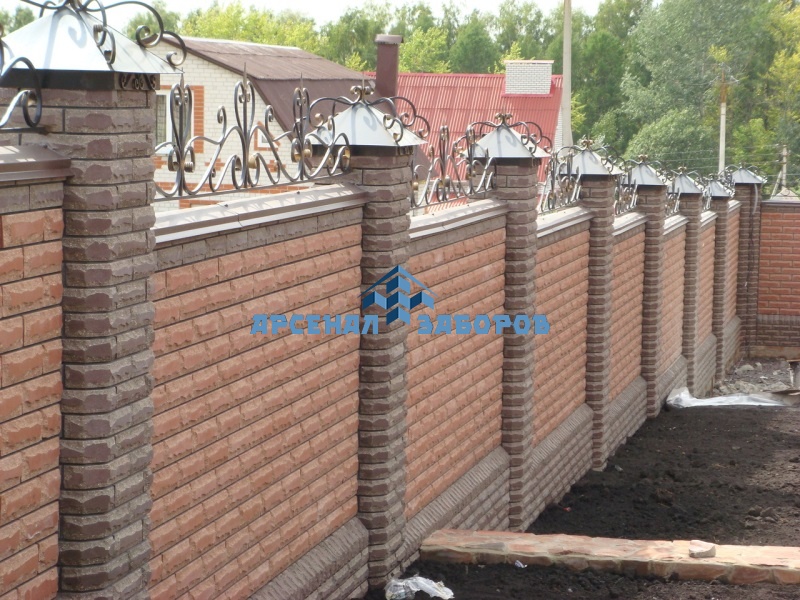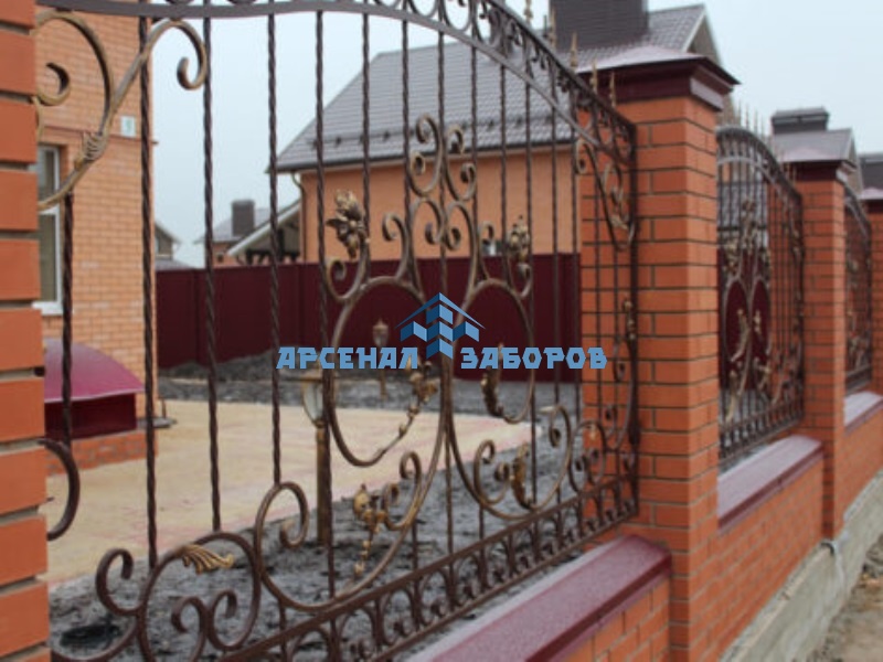 Фото работ - кирпичный забор с ковкой